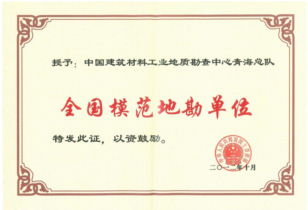 憑借著優(yōu)秀的工作成績,青??傟?duì)于2012年獲評全國模范地勘單位。該獎(jiǎng)項(xiàng)是為表揚(yáng)全國地勘行業(yè)單位為經(jīng)濟(jì)社會(huì)發(fā)展作出的重大貢獻(xiàn),大力弘揚(yáng)“為國為民、艱苦奮斗、甘于奉獻(xiàn)、勇于獻(xiàn)身”的崇高精神和優(yōu)秀品格,進(jìn)一步激發(fā)地質(zhì)工作者的積極性和創(chuàng)造性,促進(jìn)地勘行業(yè)健康發(fā)展。