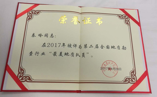 中國建材地勘中心廣東總隊秦嶺,此次獲得全國地質(zhì)勘查行業(yè)第二屆“最美地質(zhì)隊員”殊榮。