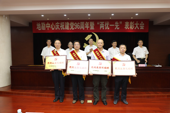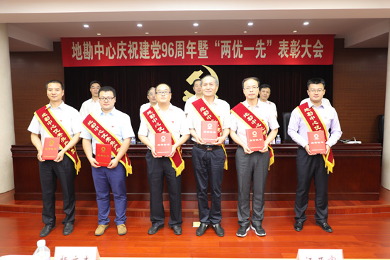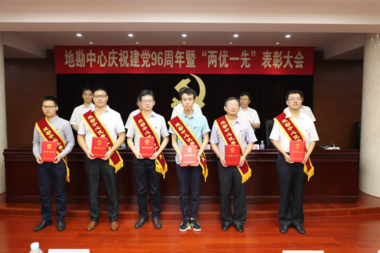 吳巖宣讀了地勘中心黨委關(guān)于表彰地勘中心“兩優(yōu)一先”的決定,地勘中心領(lǐng)導(dǎo)班子成員分別向8個先進基層黨組織、13名共產(chǎn)黨員和4名黨務(wù)工作者頒發(fā)了獎牌和證書。