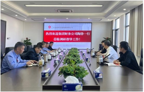 11月21日,中國建材集團財務有限公司(以下簡稱“財務公司”)黨委書記、總經理陶錚一行蒞臨中非新材料開展調研交流,中非新材料黨支部書記、董事長、總經理張北平陪同調研。