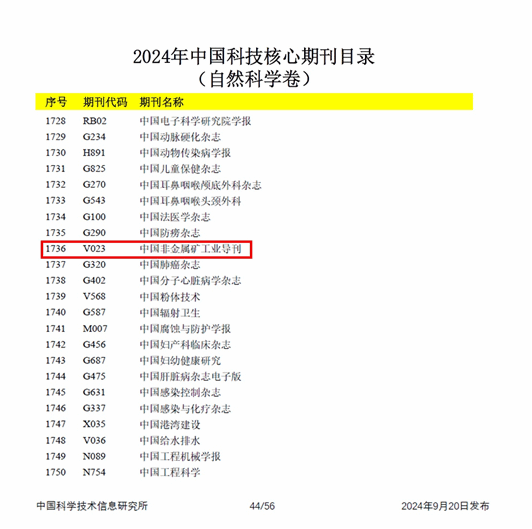 近日,中國科學技術信息研究所召開了“2024年中國科技論文統(tǒng)計報告發(fā)布會”,會議發(fā)布了2024年中國科技核心期刊目錄,《中國非金屬礦工業(yè)導刊》又一次成功入選中國科技核心期刊,這是本刊連續(xù)第15年入選中國科技核心期刊。