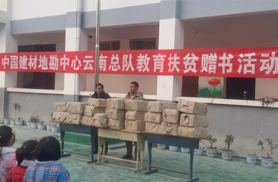 中建材集團(tuán)始終把精準(zhǔn)扶貧、掛包幫扶作為一項最重要的任務(wù),我隊作為集團(tuán)下屬地勘板塊的一份子,在永善縣脫貧攻堅戰(zhàn)中,也勇?lián)呜?zé)任、經(jīng)濟(jì)責(zé)任和社會責(zé)任??傟犻L、黨委書記楊文杰在12月上旬參加集團(tuán)及地勘中心赴昭通扶貧調(diào)研期間,得知黃金小學(xué)的具體困難后,義不容辭向黃金小學(xué)伸出了援助之手,撥付2萬余元教育扶貧款,為學(xué)校新購了350種不同類別的小學(xué)生課外讀物2000冊。