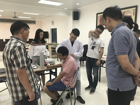 活動現(xiàn)場,醫(yī)生通過中醫(yī)診療的方式,為職工講解并提供了辨析體質(zhì)、養(yǎng)生理療、常見病中醫(yī)保養(yǎng)及治療、中醫(yī)飲食調(diào)理等服務(wù)內(nèi)容。