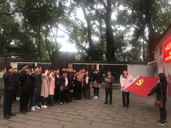 在福建人民革命大學舊址紀念碑前,我隊黨委副書記、紀委書記陳海巖帶領(lǐng)黨員同志們重溫了入黨誓詞,每一名黨員懷著崇敬的心情面對黨旗莊嚴宣誓。