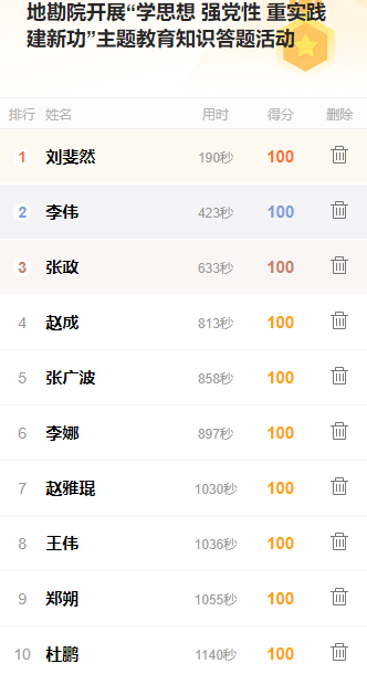 為深入學(xué)習(xí)貫徹習(xí)近平新時(shí)代中國(guó)特色社會(huì)主義思想和黨的二十大精神,推動(dòng)地勘院主題教育走深走實(shí),堅(jiān)決擁護(hù)“兩個(gè)確立”、增強(qiáng)“四個(gè)意識(shí)”、堅(jiān)定“四個(gè)自信”做到“兩個(gè)維護(hù)”,切實(shí)引領(lǐng)地勘院全體黨員把主題教育轉(zhuǎn)化為推動(dòng)企業(yè)高質(zhì)量發(fā)展的強(qiáng)大動(dòng)力,地勘院于近日舉辦線上“學(xué)思想、強(qiáng)黨性、重實(shí)踐、建新功”主題教育知識(shí)答題活動(dòng)。各支部黨員、積極分子積極參與答題。