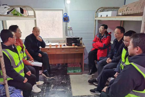 在項(xiàng)目部駐地,總隊(duì)領(lǐng)導(dǎo)詳細(xì)了解了項(xiàng)目進(jìn)展情況,對(duì)各項(xiàng)工作予以了充分肯定,結(jié)合冬季施工,就做好安全環(huán)保、質(zhì)量管控進(jìn)行了強(qiáng)調(diào)。調(diào)研中,總隊(duì)領(lǐng)導(dǎo)按照“四下基層”的要求,對(duì)上級(jí)黨委主題教育工作部署進(jìn)行了傳達(dá),并深入了解一線同志們的工作、思想和生活情況,認(rèn)真征求改進(jìn)工作的建議意見(jiàn)。
