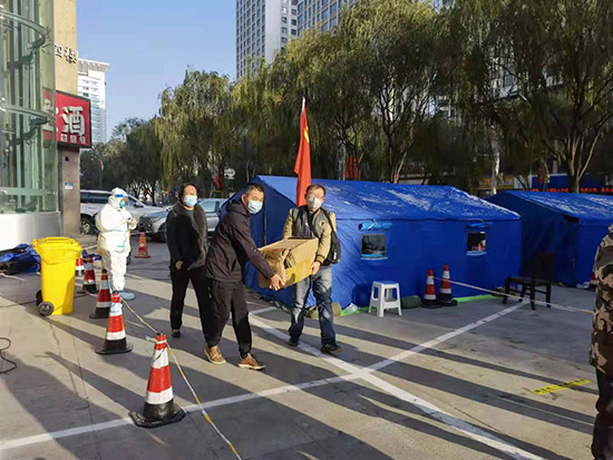 10月28日以來,青海省西寧市突發(fā)疫情。在這場全民行動堅決打贏疫情殲滅戰(zhàn)中,青??傟牱e極響應號召,對疫情防控工作再部署、再落實。11月的西寧,氣溫驟降、風雪交加,一線抗疫人員冒著嚴寒為市民進行全員核酸檢測。總隊守好自己的門,管好自己的人,同時,立即組織購買暖手寶和熱水袋等保暖物資,送到所轄的西交通巷社區(qū)和通海路街道辦事處一線人員手中,為嚴寒中堅守抗疫陣地的一線人員送去了溫暖和關愛。