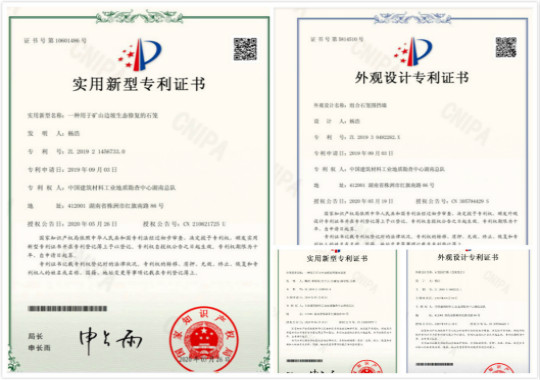 “十三五”時(shí)期,湖南總隊(duì)基于中材株洲馬家橋礦區(qū)高陡巖質(zhì)邊坡復(fù)綠試點(diǎn)項(xiàng)目,成功申獲綠色礦山《一種基于礦山生態(tài)修復(fù)用蓄水裝置》、《一種用于礦山邊坡生態(tài)修復(fù)的石籠》、《一種基于礦山生態(tài)修復(fù)用儲(chǔ)水裝置》實(shí)用新型專利3項(xiàng),以及《石籠圍擋墻(直角組合)》、《組合石籠圍擋墻》《一種用于生態(tài)修復(fù)用的碟形體儲(chǔ)水箱》外觀設(shè)計(jì)專利3項(xiàng)。