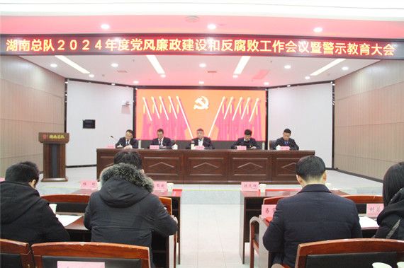 2月4日,湖南總隊(duì)黨委召開2024年黨風(fēng)廉政建設(shè)和反腐敗工作會(huì)議暨警示教育會(huì)議,學(xué)習(xí)二十屆中央紀(jì)委三次全會(huì)精神,總結(jié)2023年工作,部署2024年任務(wù),開展警示教育。黨委書記、總隊(duì)長(zhǎng)饒克輝出席會(huì)議并講話。黨委副書記、紀(jì)委書記李會(huì)洋主持會(huì)議并做工作報(bào)告??傟?duì)領(lǐng)導(dǎo)班子成員出席會(huì)議。