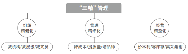“三精”管理的核心內容是組織精健化、管理精細化、經營精益化。組織精健化就是減機構、減層級、減冗員,各企業(yè)要保持壓減節(jié)奏,避免企業(yè)膨脹、管理不到位出現(xiàn)“跑冒滴漏”。管理精細化就是降成本、提質量、增品種,各企業(yè)要深入實施八大工法、六星企業(yè)、增節(jié)降等管理工法,全面落實成本費用節(jié)約計劃,加強質量管理,增加產品種類。經營精益化就是價本利、零庫存、集采集銷,各企業(yè)要繼續(xù)堅持“價本利”經營理念,聚焦市場,穩(wěn)定價格,以銷定產,實時生產,集中采購銷售,爭創(chuàng)更大效益。